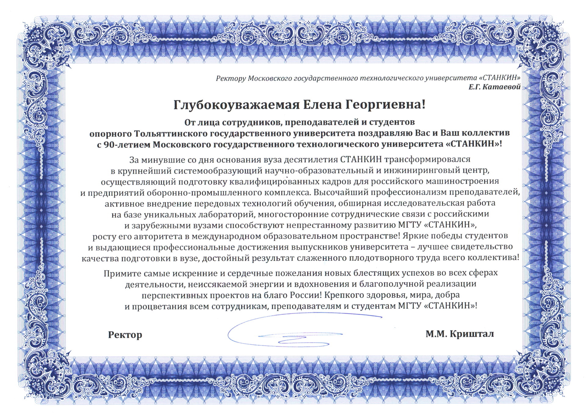- Поздравление от Тольяттинского государственного университета