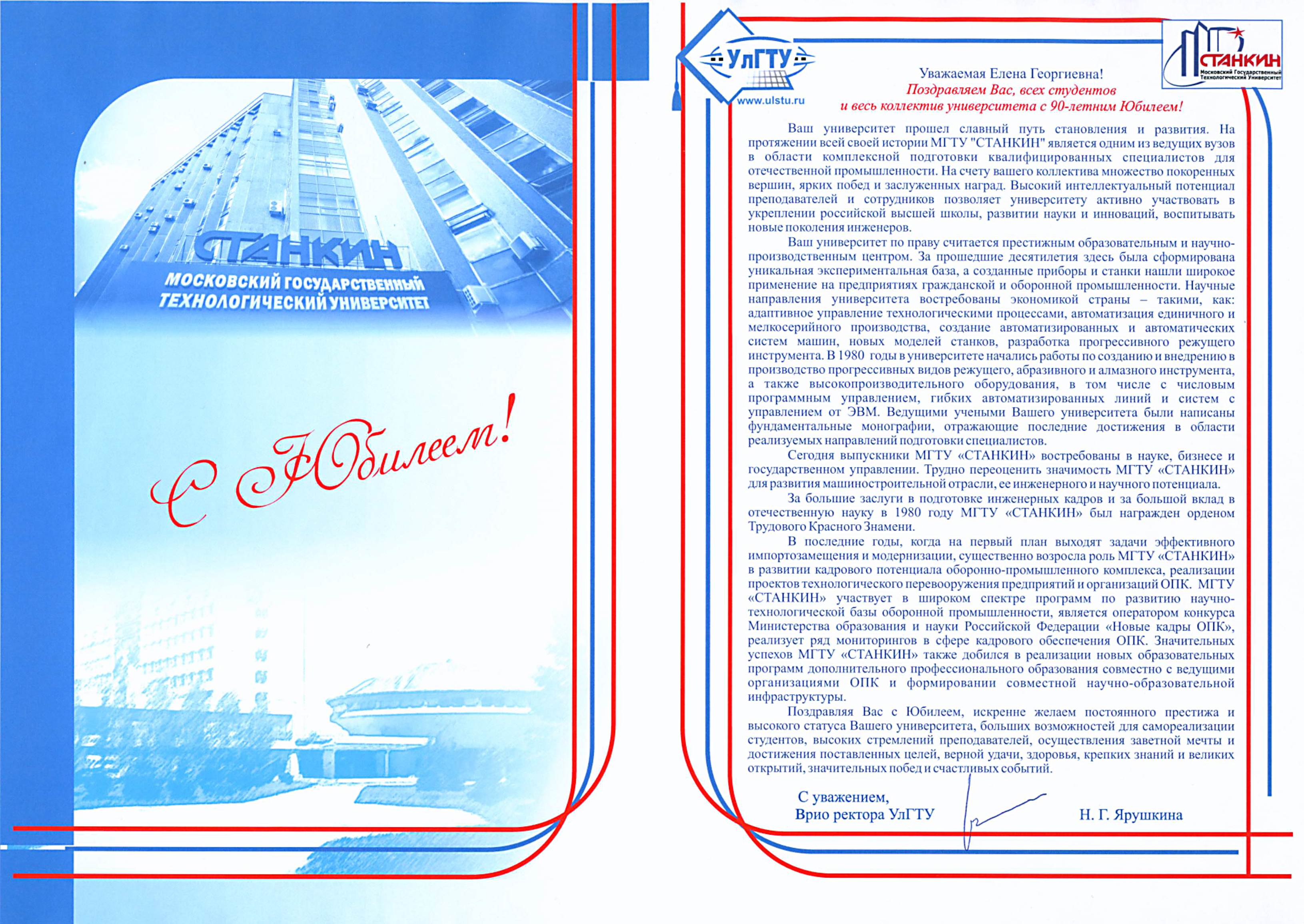 - Поздравление от Ульяновского государственного технического университета (УлГТУ)