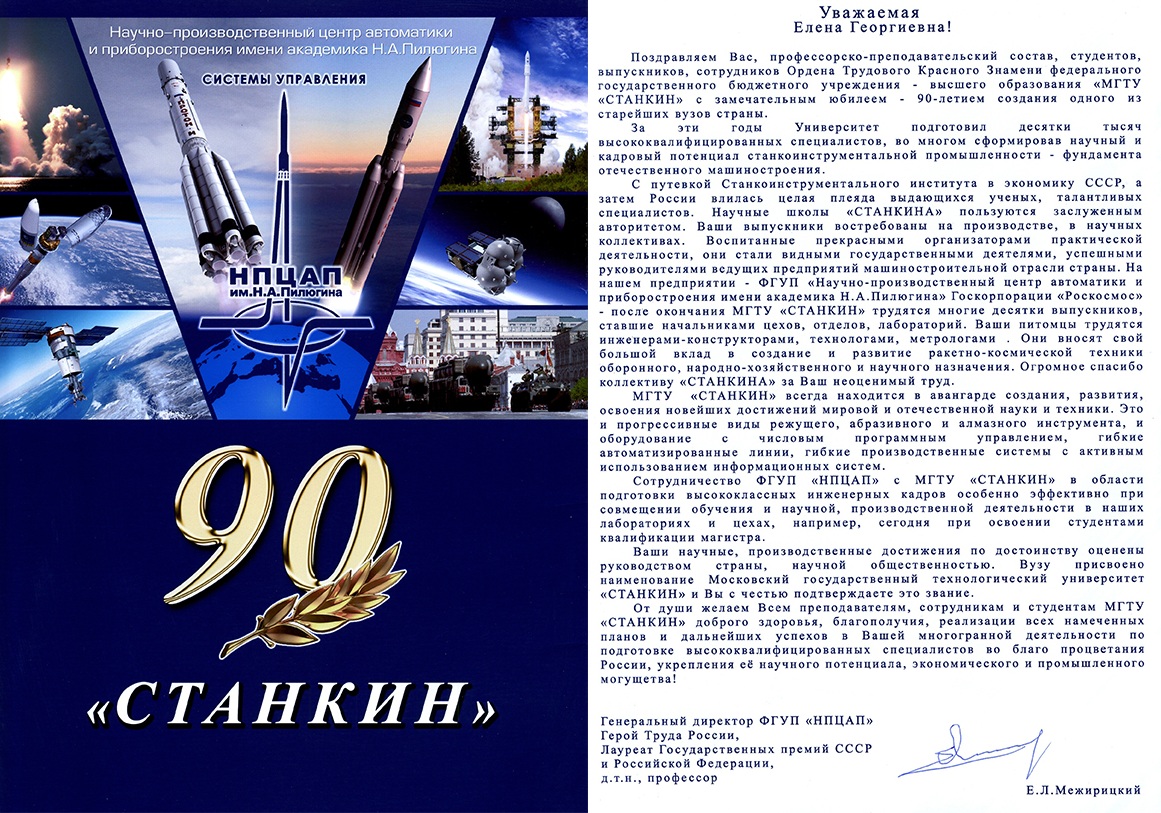 - Поздравление от АО «Научно-производственное объединение им. С.А. Лавочкина»