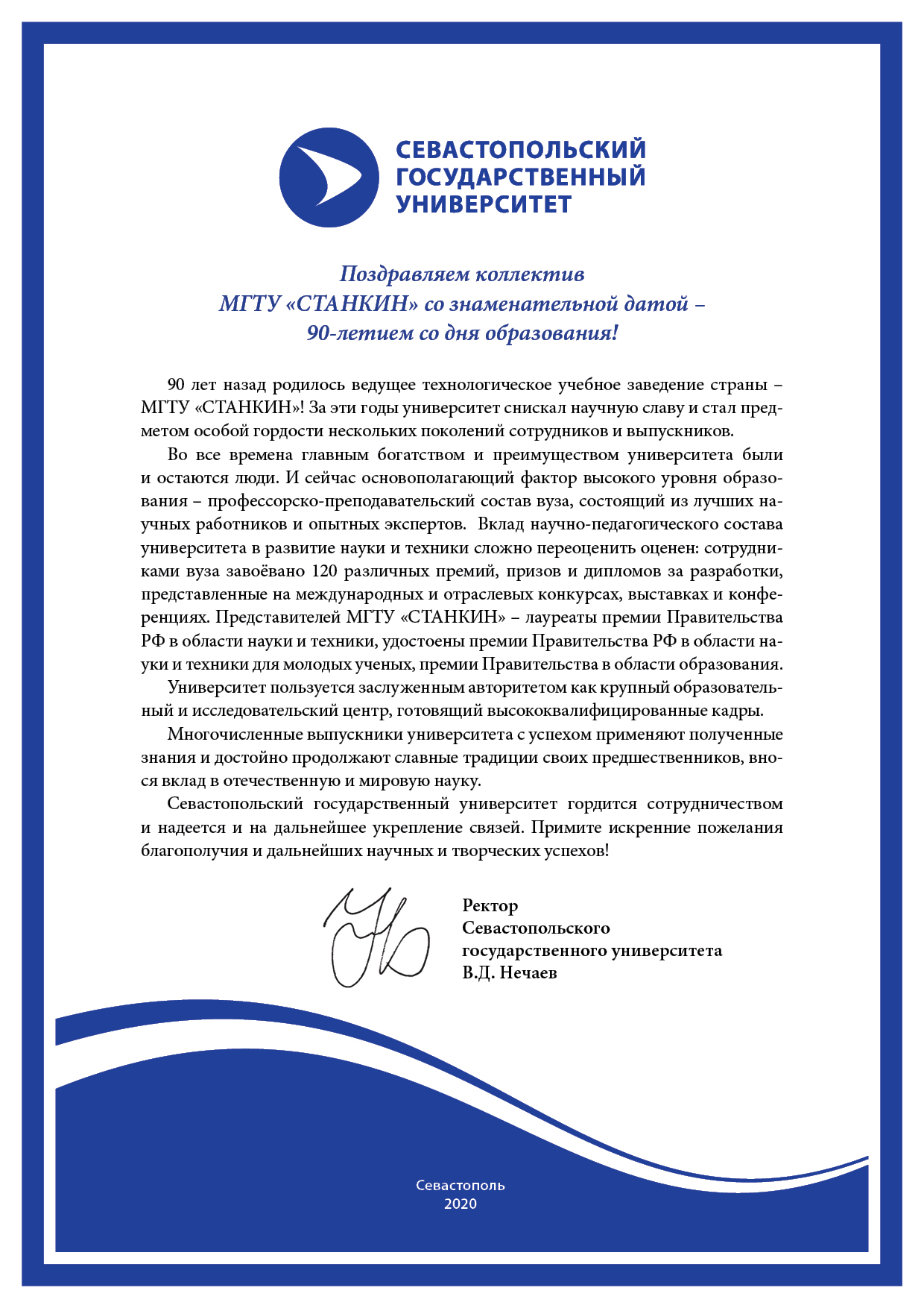 - Поздравление от Севастопольского государственного университета