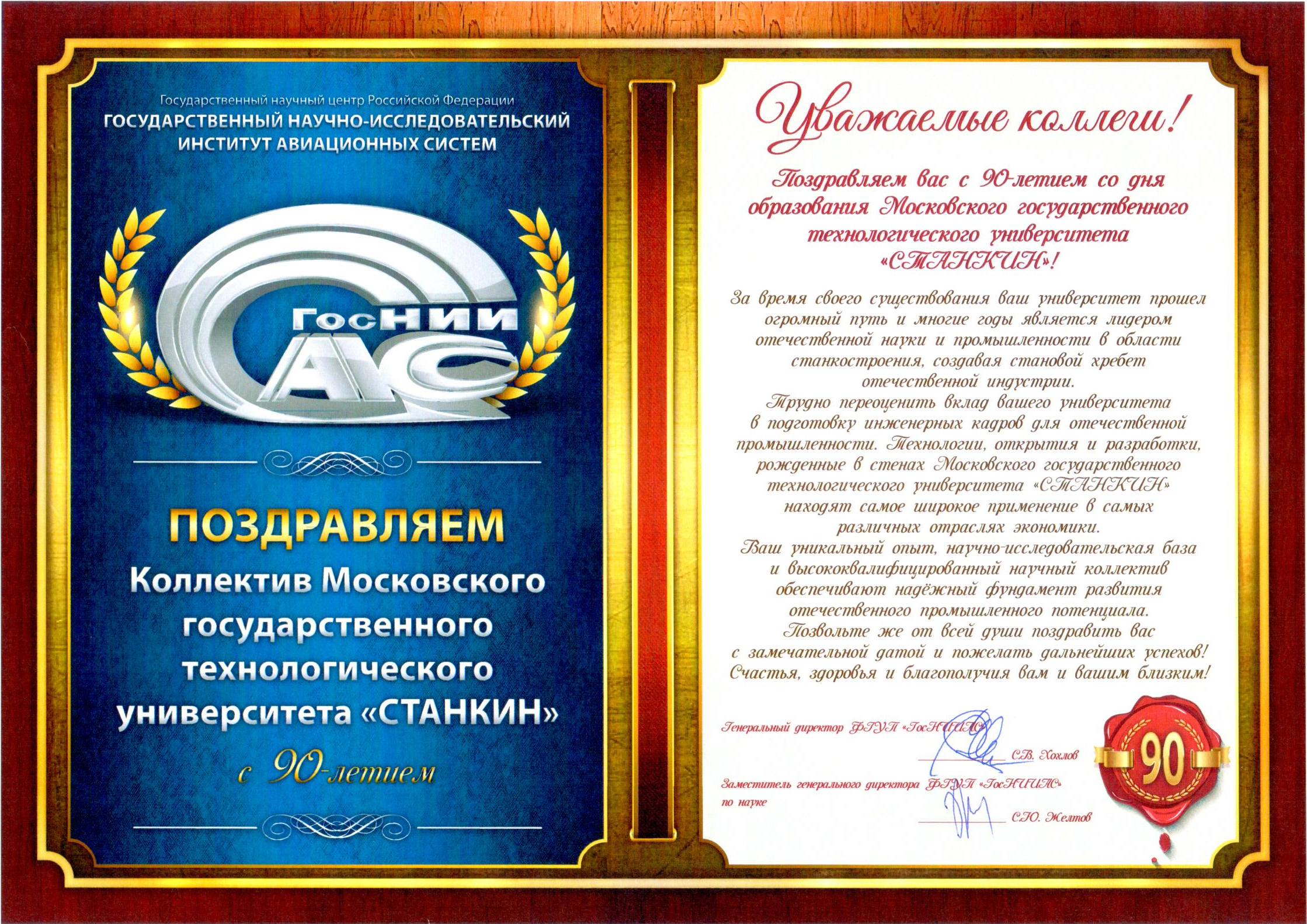 - Поздравление от ФГУП «ГосНИИАС»