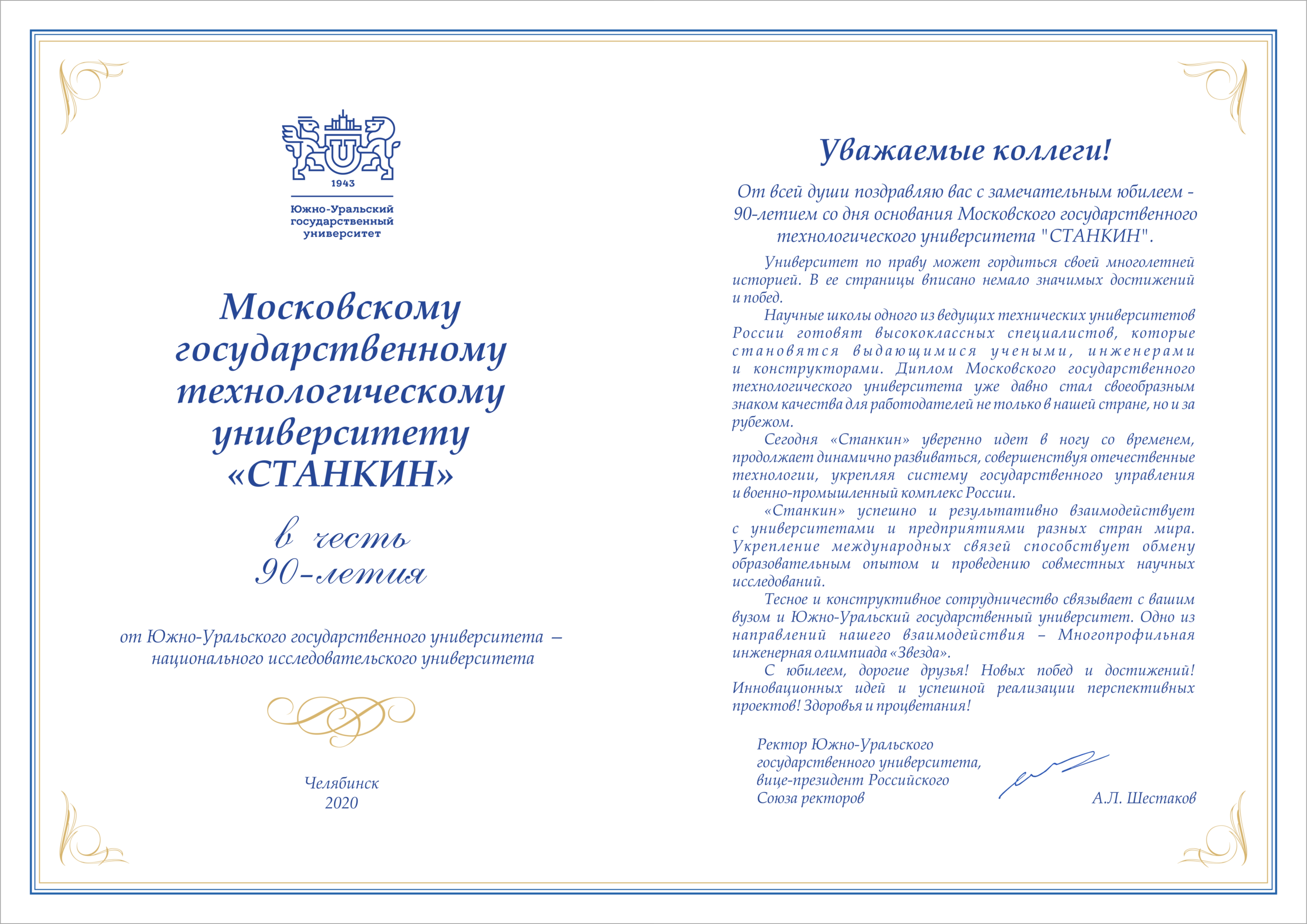 - Поздравление от Южно-Уральского государственного университета