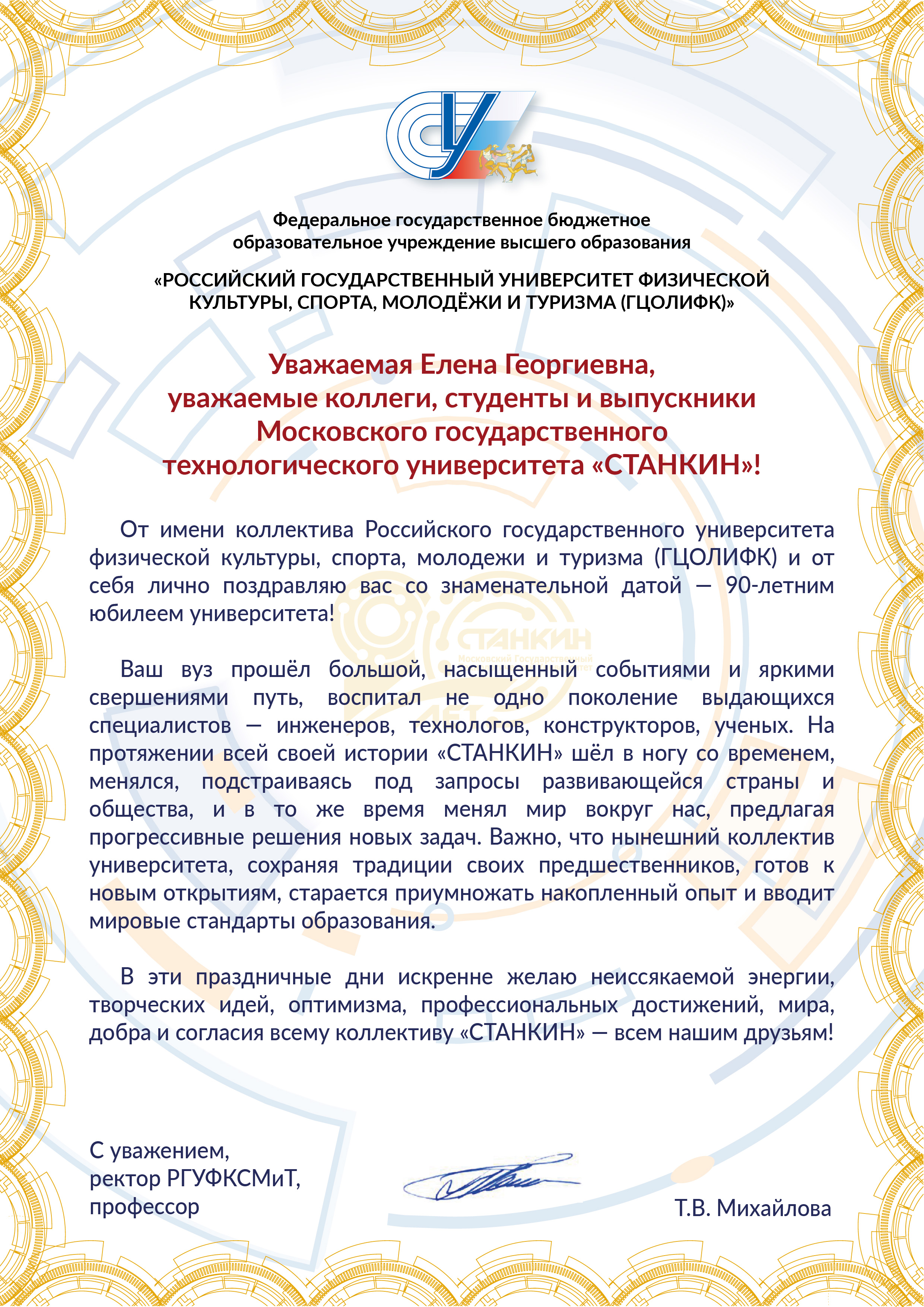 - Поздравление от РГУФКСМиТ