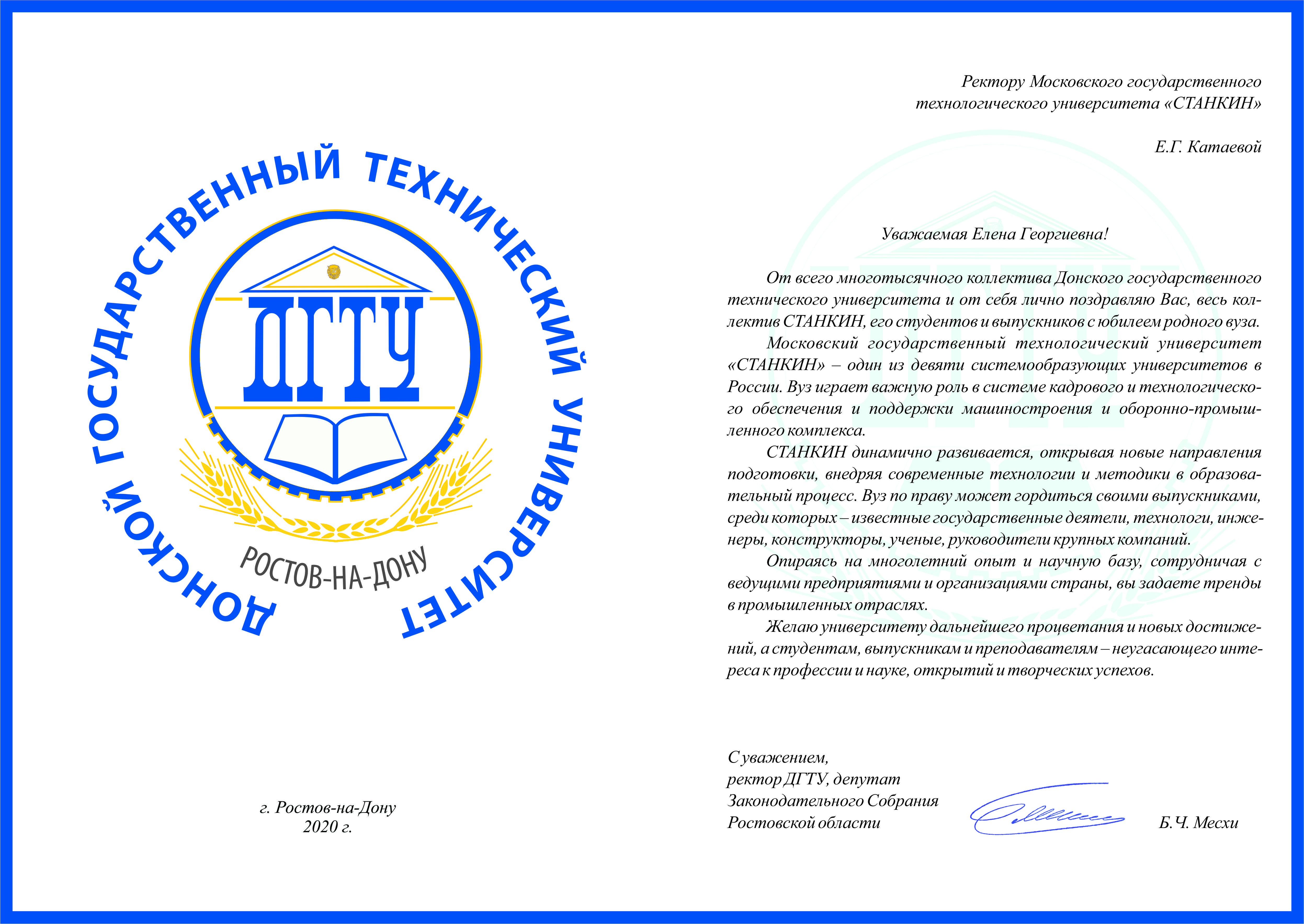 - Поздравление от Донского государственного технического университета