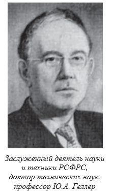 Заслуженный деятель науки и техники РСФСР, профессор Ю.А. Геллер получил хорошее общее и профессиональное образование и владел тремя европейскими языками. Это позволяло ему иметь обширную и современную информацию в области инструментальных материалов. Ю.А. Геллер отличался большой работоспособностью, был прекрасным организатором не только проводимых исследований, но и учебного процесса на кафедре. Об этом редком сочетании крупного ученого и блестящего педагога свидетельствует судьба его книг. Монография «Инструментальные стали» выдержала пять изданий, а учебное пособие для высшей школы «Материаловедение» – шесть. По этому учебному пособию до сих пор проводятся занятия в большинстве вузов Российской Федерации.
