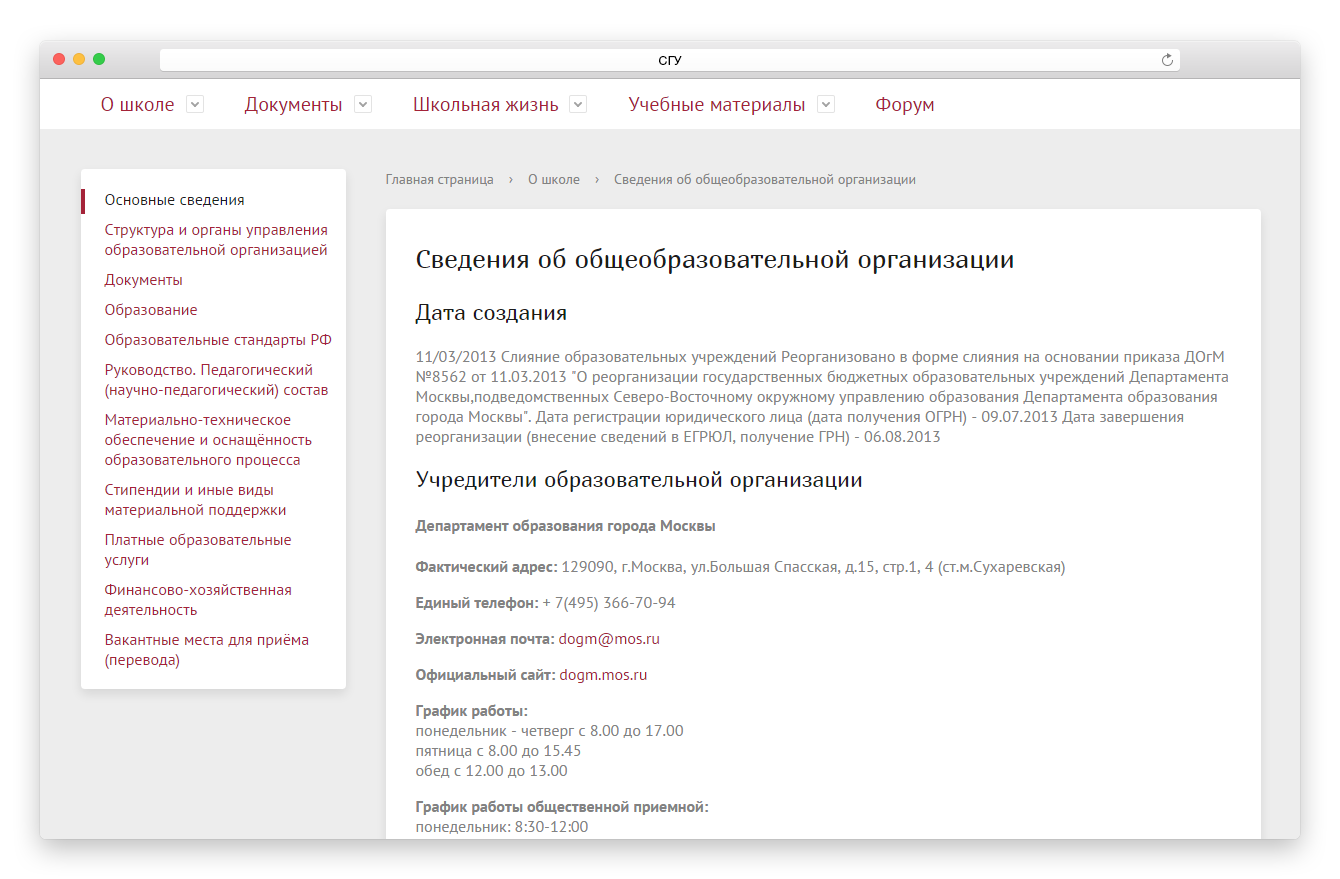 - Сведения об образовательной организации