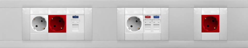 Рабочие места организуются из расчёта 1 розетки RJ-45 и двух электрических. Кабельные линии к местам будут подводиться в пластиковых кабельных каналах с разделителями. Розетки монтируются в короб с помощью специальных модульных вставок.